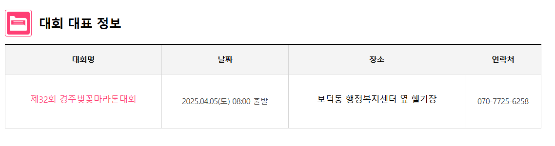 제32회 경주벚꽃마라톤, 2025년 4월 5일 토요일, 보덕동행정복지센터 옆 헬기장