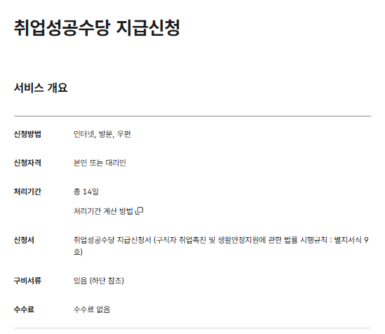 로그인 후 신청: '취업성공수당' 메뉴에서 신청서 작성 및 제출