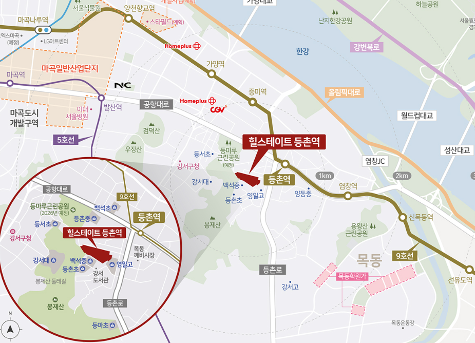 특히, 등촌초, 백석중, 영일고 등 명문 학군과의 접근성이 좋아 학부모 수요자들에게 매력적인 선택지가 될 것입니다. 주변에는 강서도서관, 목동 학원가 등이 위치해 있어 자녀 교육 환경에 민감한 수요자들에게 강력한 장점을 제공합니다.