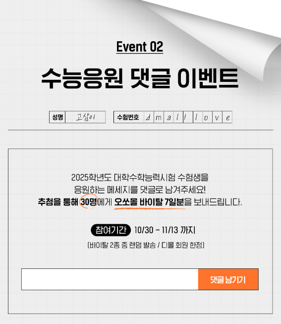 합격기원 수험생 응원 한마디 ! 오쏘몰 바이탈 2만원대댓글이벤트게시판 - 동아제약 공식몰 디몰 Dmall