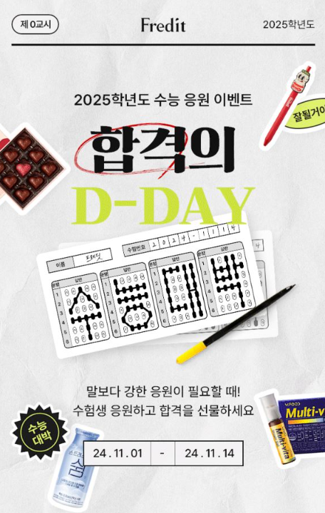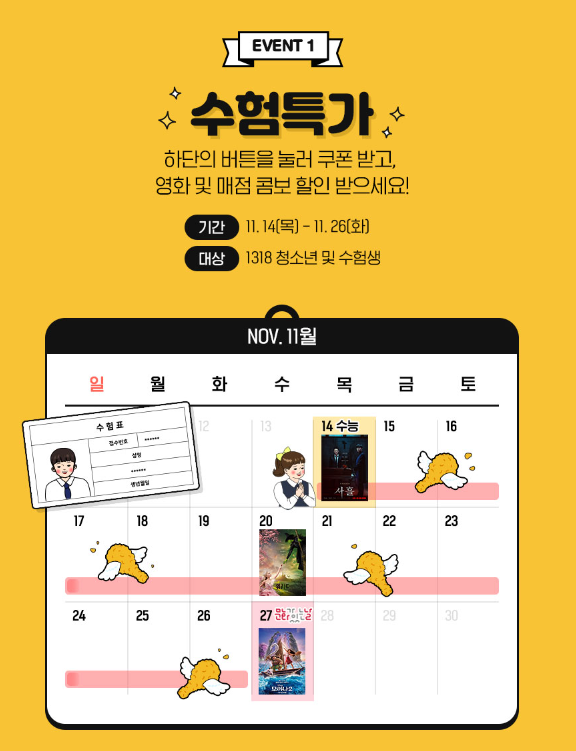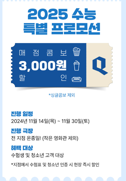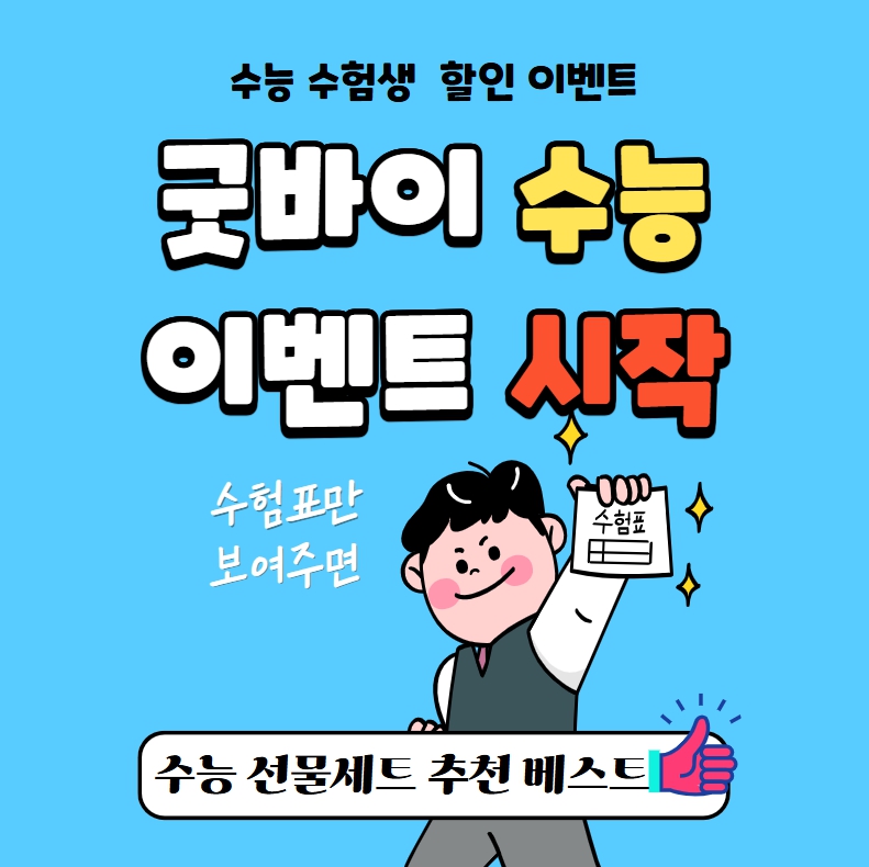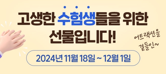 수능 2만 안녕~!2025 수능 수험생을 위한 2만원 혜택!유효 기간 : 2024년 11월 14일(목) ~ 11월 30일(토)