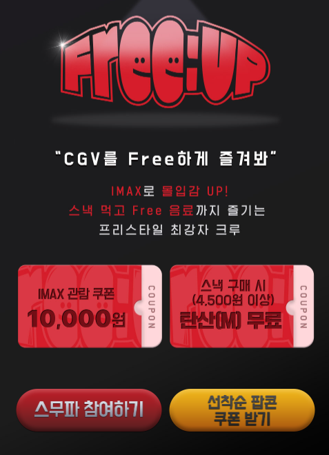 CGV, 롯데시네마, 메가박스, 씨네Q: 영화관은 수험생들에게 영화 티켓을 할인된 가격인 7,000원에 제공하며, 매점 할인 혜택도 추가로 제공합니다. CGV는 콤보 50% 할인 쿠폰을 제공하고, 롯데시네마는 굿즈콤보를 6,000원 할인, 메가박스는 팝콘을 증정하는 등 다양한 이벤트를 진행합니다.