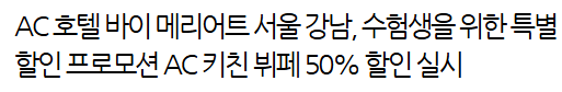 AC 호텔 바이 메리어트 서울 강남: 수험생 본인에게 런치 및 디너 뷔페를 50% 할인하며, 가족이나 지인에게도 추가 할인 혜택을 제공합니다.