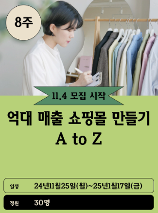 [8주] 억대 매출 쇼핑몰 만들기 A to Z: 성공적인 쇼핑몰 운영을 위한 전략과 실무를 다루는 8주 프로그램입니다.