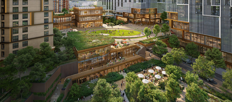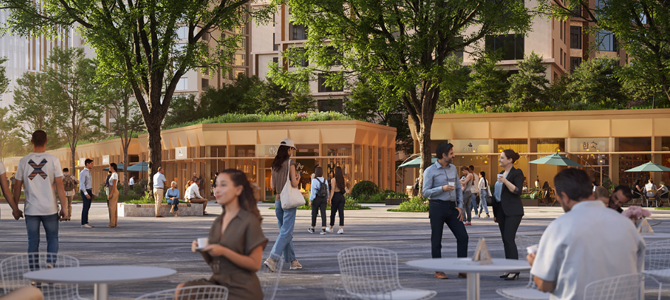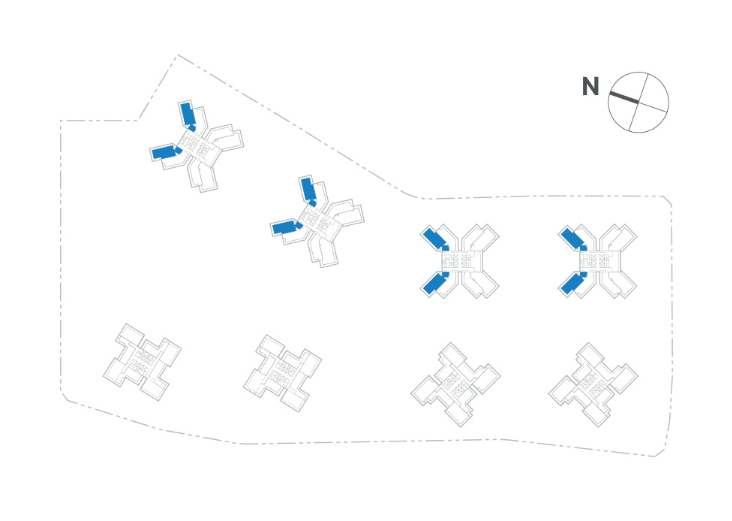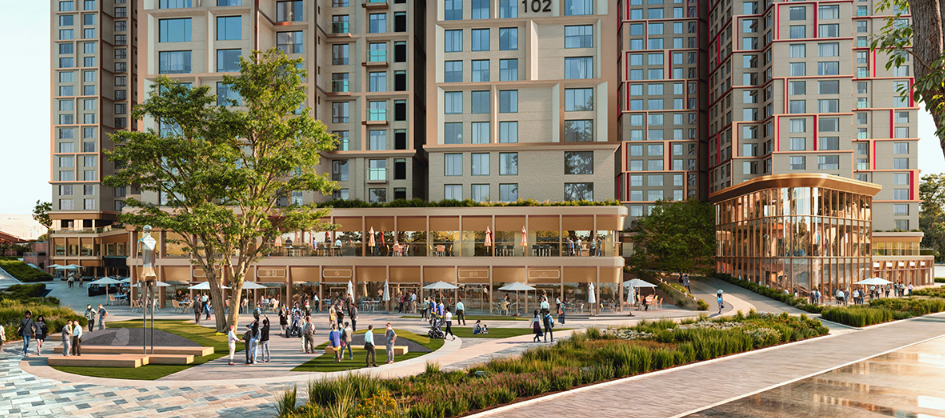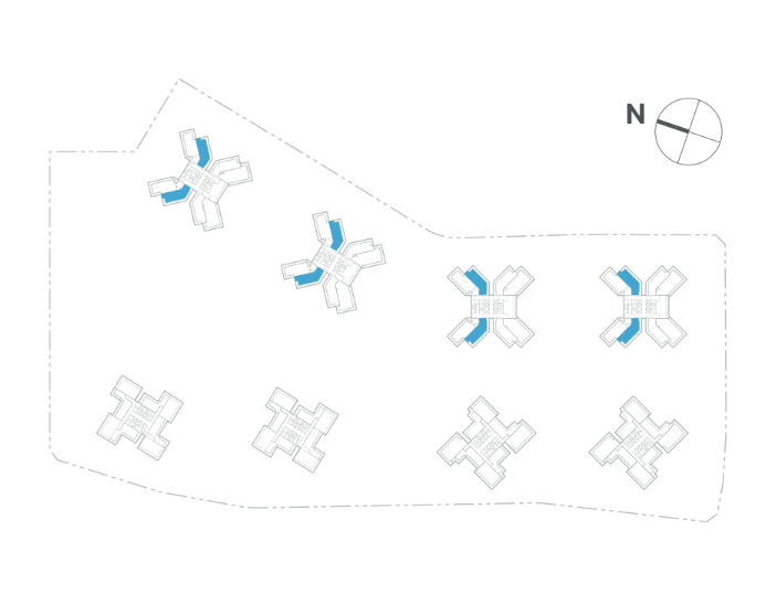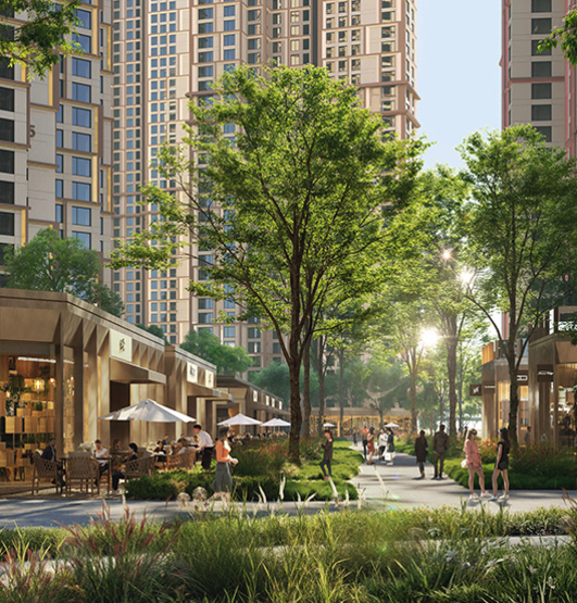 ● 녹지 및 휴식 공간: 47층 높이의 건물들 사이에 녹지 공간을 조성하여 쾌적한 주거 환경을 제공합니다.