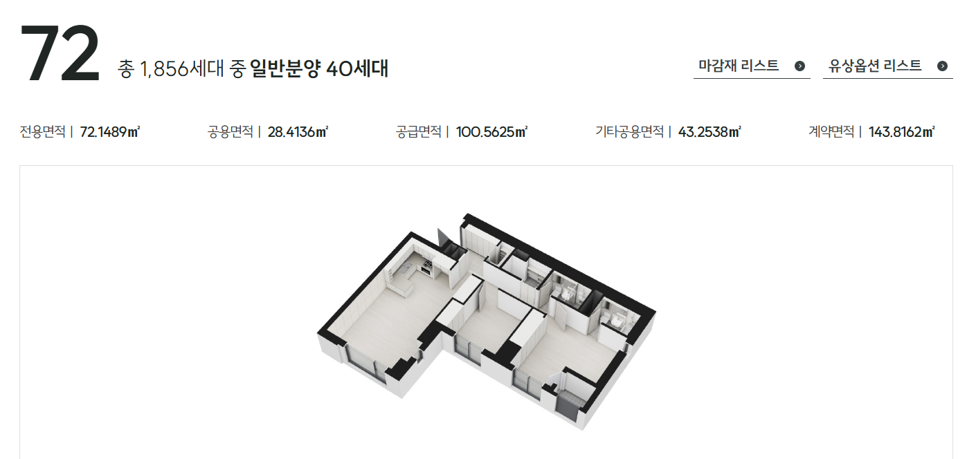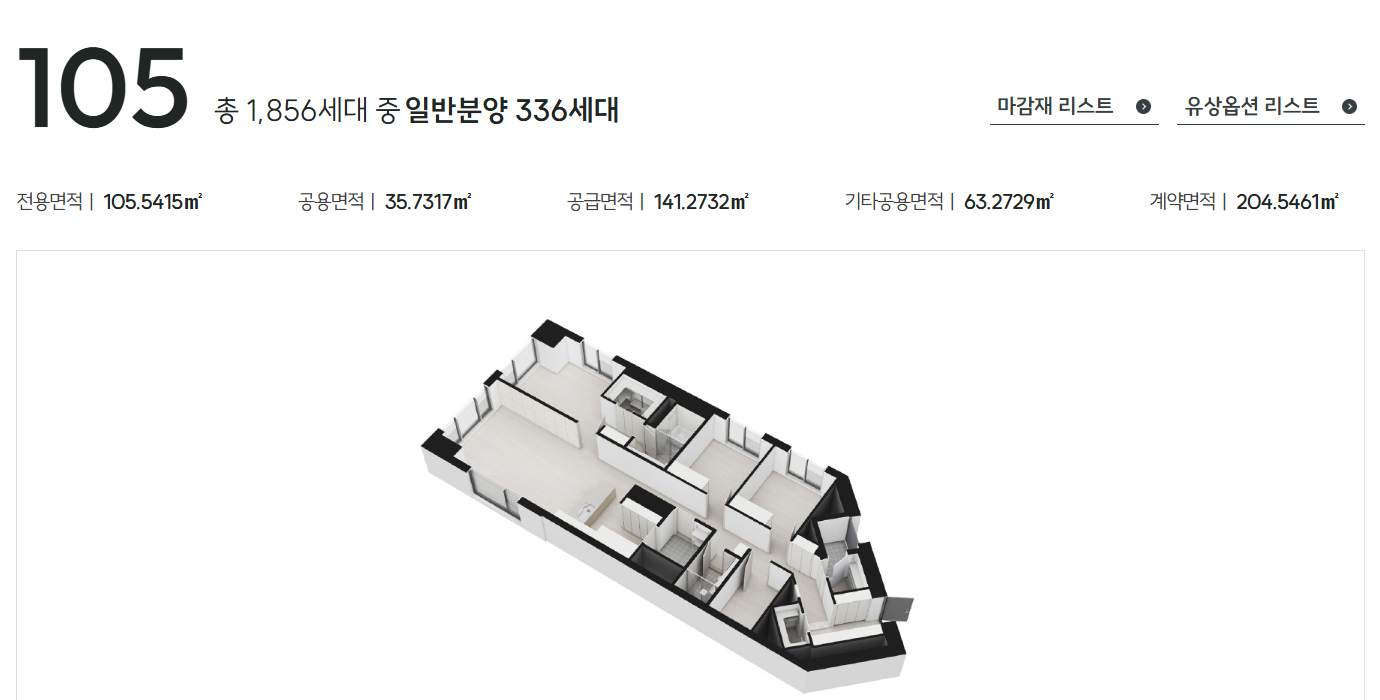 ●특화된 평면 설계: 단지는 공간 활용을 극대화하기 위해 개별 침실 공간을 넓게 설계하고, 충분한 수납공간을 제공하는 등 실수요자의 요구를 반영한 구조를 채택했습니다.