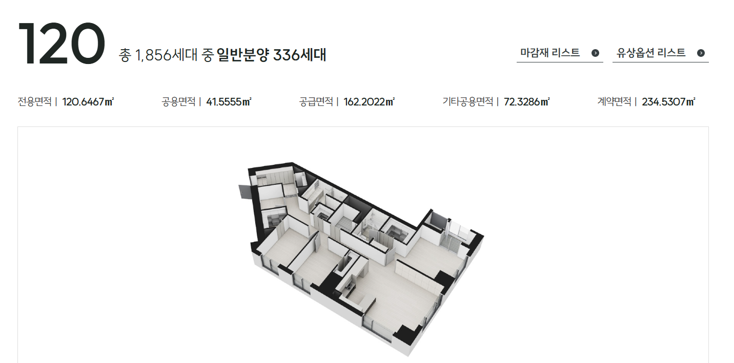 ● 120㎡A 타입: 약 18억8700만 원대로, 대형 평형에서는 프리미엄 주거 환경을 선호하는 수요층을 겨냥했습니다.
