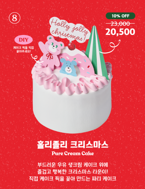 ● 홀리졸리 크리스마스: DIY 케이크로, 고객이 직접 꾸밀 수 있는 재미 요소 제공.