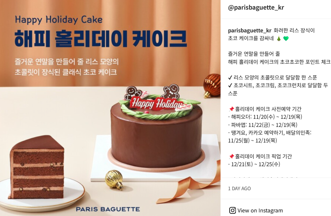 파리바게뜨는 매년 다양한 크리스마스 케이크 라인업으로 고객들의 사랑을 받고 있습니다. 올해의 테마는 “Wish You a Happy Holiday”로, 고객들의 소원을 담아 따뜻하고 희망찬 연말을 선물하고자 기획되었습니다.