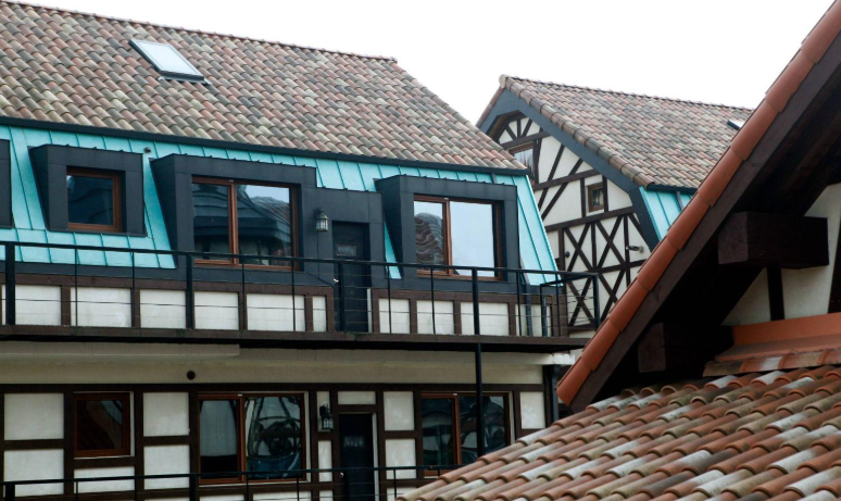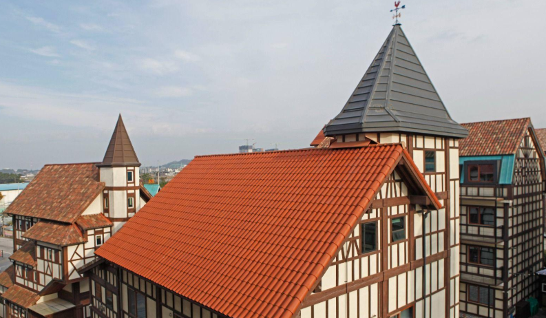 유럽풍 건축: 이중 경사 지붕과 첨탑으로 꾸며진 독일식 건축물은 이국적인 분위기를 만끽하기에 충분합니다.