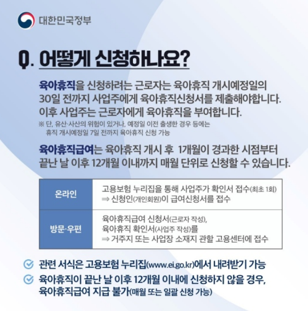 육아휴직 급여신청 기간 1년 6개월 수당 신청방법